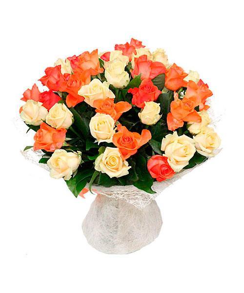 Букет из 39 оранжево-белой розы