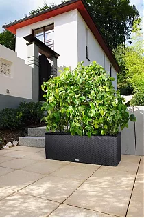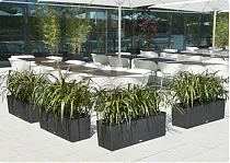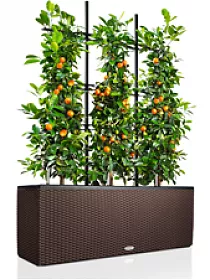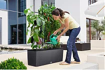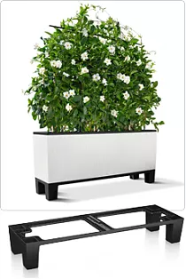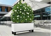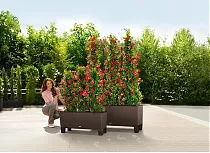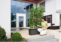 TRIO Cottage – это лоток для растений с множеством вариантов использования, который благодаря сменным съемным горшкам и опциональной решетке прекрасно способен разделить террасу или выступить в качестве визуальной защиты, а также подходит для выращивания различных сортов овощей и фруктов. Прекрасным дополнением являются дополнительное приобретаемые тумбы TRIO.