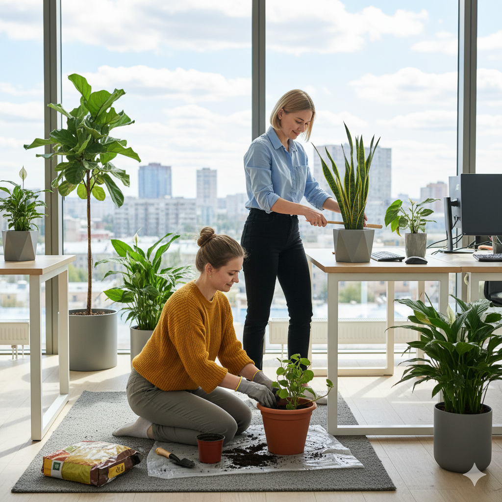 - Доставка и пересадка растений (доставка растений и кашпо осуществляется после 70% предоплаты. Все сроки поставки оговариваются заранее. Пересадку растений стараемся осуществлять на нашем складе, чтобы вам в дом привезти уже готовый вариант;