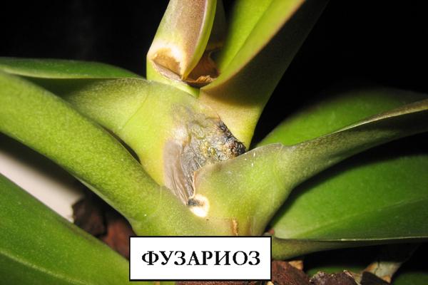 Фузариоз – гниль, вызванная плесневелыми грибами. Очень опасное для орхидеи заболевание, с таким диагнозом растение не вылечить. Прежде всего, потому, что первыми заболевают корни, и вовремя обнаружить признаки заболевания очень сложно. Увидеть признаки того, что орхидея заражена гнилью можно по потерявшим тургор листьям.
