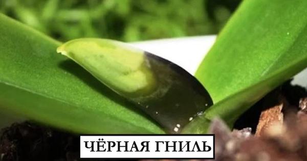 Черная гниль проявляется почернением некоторых участков орхидеи. Сначала чернеют листья, потом становятся, как уголь, стебли, после них меняют цвет корни. Возбудителями этой опасной патологии являются несколько видов грибов. При правильном ухаживании за цветком условия для проявления этой болезни не возникают.