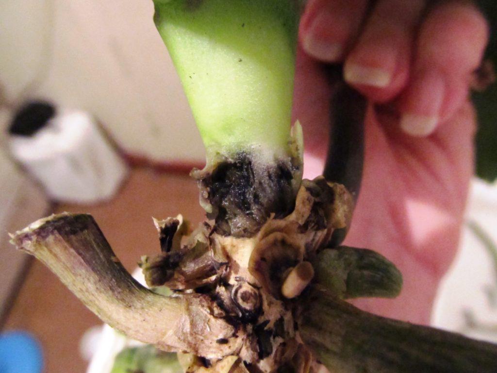 5. Если загнил сам стебель, нужно разрезать его в месте гниения, вырезать гниль, а оставшийся стебель обработать :
