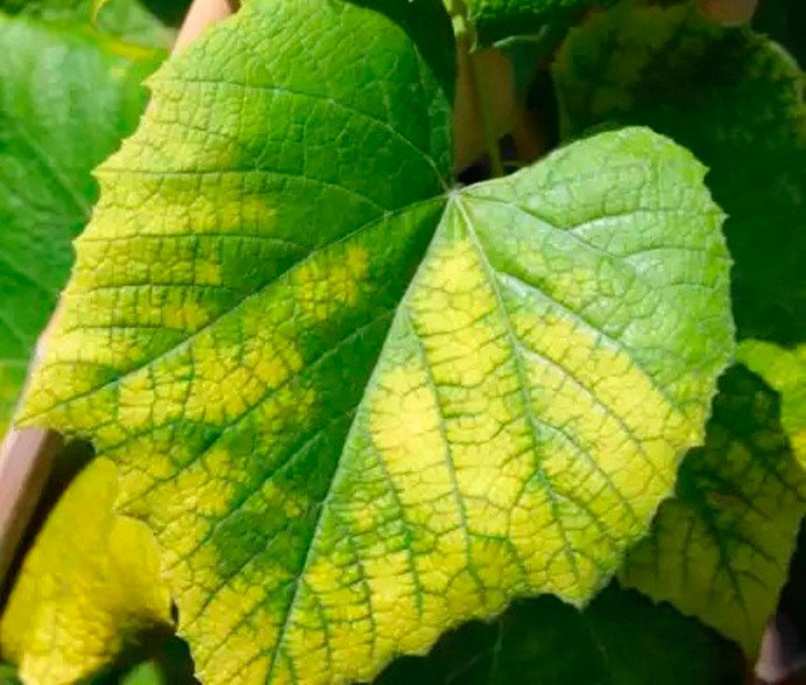 Этот вид хлороза необходимо быстро лечить орошением (внекорневой подкормкой).