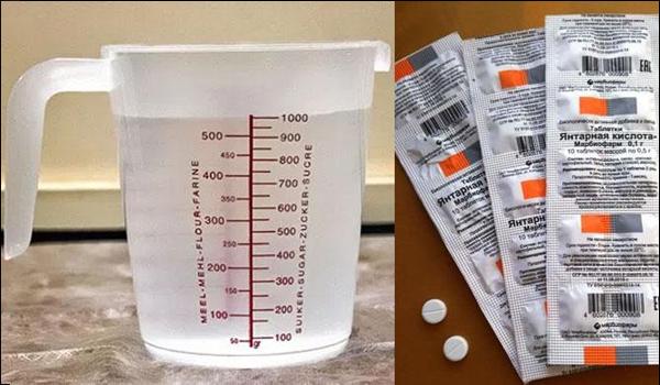 Рекомендуется пользоваться для работы с янтарной кислотой стеклянными или пластиковыми емкостями, которые имеются на кухне. Разводить препарат в пищевой посуде не опасно, так как это вещество не токсичное. Металлические изделияне используют для измельчения и растворения вещества.