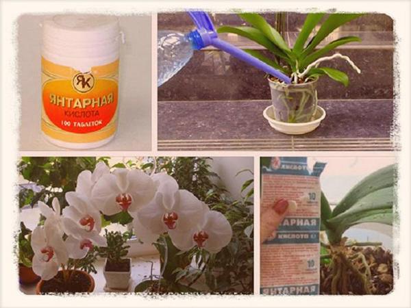 Применение янтарной кислоты позволит получить более здоровые, эффектно цветущие орхидеи. Вещество защищает растения от стресса, связанного с недостатком кислорода и другими негативными факторами. Янтарная кислота безвредна как для растений, так и для людей, домашних животных.