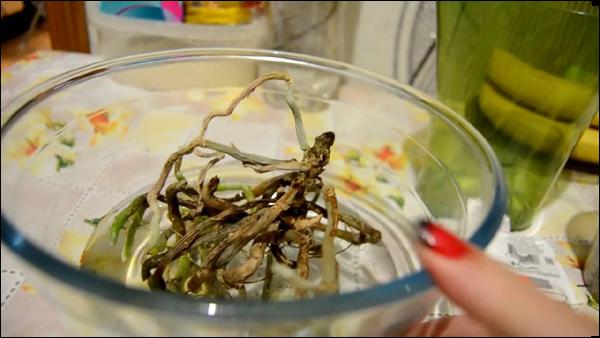 В состав смеси для реанимации увядших орхидей, помимо перечисленных выше витаминов включают 1 г стимулятораКорневина(на кончике ножа). Глюкозу и аскорбинку можно не применять. Взятые вещества растворяют в 1 л воды. Полученным живительным «коктейлем» поливают и опрыскивают орхидею, которая нуждается в реанимации.
